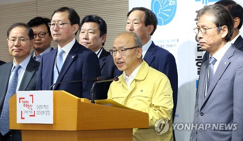 | △ '이제 국민안심병원에서 안심하고 진료받으세요' (세종=연합뉴스) 배재만 기자 = 문형표 보건복지부 장관이 11일 오후 정부세종청사 보건복지부 공용브리핑룸에서 박상근 대한병원협회 회장, 추무진 대한의사협회 회장 등과 함께 국민안심병원 선정에 대해 발표하고 있다. 국민안심병원은 발열과 기침 등 호흡기 증상을 호소하는 환자에 대해 내원부터 입원까지 진료 전 과정에서 별도 공간에서 진료하는 병원을 지칭한다. 즉 일반 국민과 호흡기질환자들이 메르스 감염으로부터 안전하게 진료 받는 병원을 말한다. |
