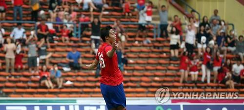 | △ (샤알람<말레이시아>=연합뉴스) 전수영 기자 = 한국 축구대표팀 이용재가 11일 오후 말레이시아 샤알람의 샤알람스타디움에서 열린 아랍에미리트(UAE)와의 평가전에서 두번째 골을 넣은뒤 환호하고 있다. 2015.6.11 swimer@yna.co.kr |
