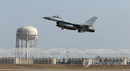 (서울=연합뉴스) 김귀근 기자 = 대북 억지력 차원에서 전북 군산 미군기지에 순환 배치된 미 F-16 전투기가 지난 11일 기체 이상 신호로 비상착륙한 것으로 알려졌다.