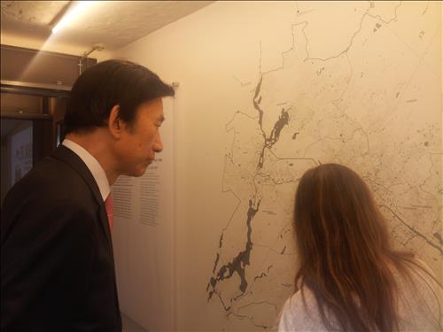 윤 장관은 크리슈티네 글라우닝 센터 소장의 안내를 받아 전시된 자료를 둘러보며 2차 세계대전 기간 베를린와 인근 도시에만 강제노동자 숙소 3천 개가 있었다는 등의 설명을 들었다.