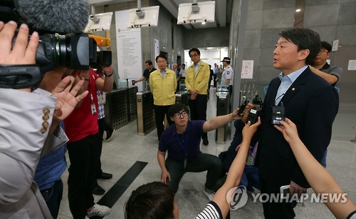 안철수 전 공동대표는 13일 한-WHO 합동조사단 공식 기자회견이 열리는 정부세종청사에서 브리핑실 입장을 요구했으나 거부당했다.
