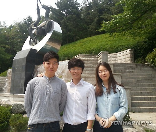 | △ 대학생들이 난독증 아동 위한 한글 교구 개발해 (서울=연합뉴스) 대학생들이 한글을 정확하게 읽거나 인지하지 못하는 난독증 어린이들을 위해 한글 교구를 직접 개발해 화제다. 좌측부터 국민대 교육학과 이만희(24)·이연규(24)·강민아(21·여)씨. 이들은 읽고 쓰기에 어려움을 겪는 취학 전후 어린이들을 위한 교구를 만들어 중소기업청 지원을 받아 상용화에 나설 예정이다. 2015. 6. 14 << 이연규씨 제공 >> photo@yna.co.kr |