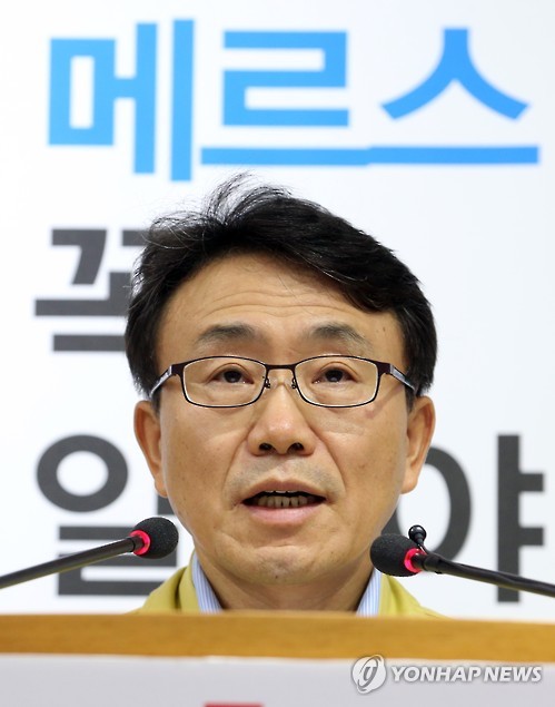 | △ '메르스 메르스' (세종=연합뉴스) 배재만 기자 = 권덕철 중앙메르스관리대책본부 총괄반장이 12일 오전 정부세종청사 보건복지부 공용브리핑룸에서 열린 정례 브리핑에서 중동호흡기증후군(메르스) 현황에 대해 설명하고 있다. 2015.6.12 scoop@yna.co.kr http://blog.yonhapnews.co.kr/f6464 |