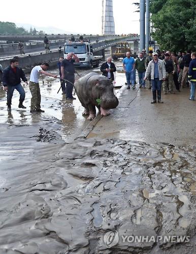 (트빌리시<조지아> AP=연합뉴스) 흑해 연안 구소련국가 조지아(옛 그루지야)의 수도 트빌리시에서 14일(현지시간) 홍수로 동물원의 울타리가 파손되면서 호랑이와 사자, 하마 등 맹수들이 대거 탈출했다.
