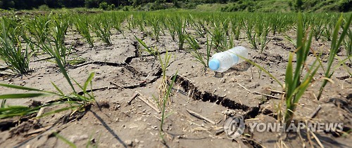 (포천=연합뉴스) 권숙희 기자 = 모를 낸 지 한 달이 넘었건만 모들은 자랄 줄을 몰랐다.지독한 가뭄에 땅이 말라붙은 탓이었다. 쩍쩍 갈라진 논 뺨 사이로 이젠 잡풀이 올라오기 시작했다.