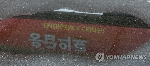 △ 메르스 첫 진원지 평택성모병원 직원들 자가격리 해제 (평택=연합뉴스) 신영근 기자 = 중동호흡기증후군(메르스) 첫 진원지인 평택성모병원 직원들의 자가격리 끝난 가운데 몇몇 직원들이 출근해 재개원 준비에 나서고 있다. 사진은 14일 오전 비가 내려 고인 웅덩이에 비친 경기도 평택성모병원 응급의료센터의 모습. 2015.6.14 drops@yna.co.kr http://blog.yonhapnews.co.kr/geenang