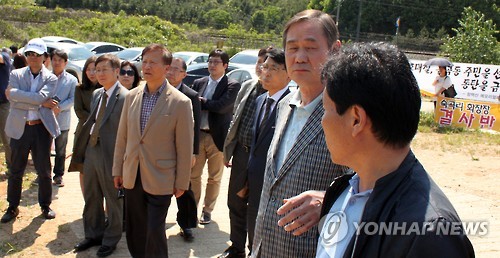 | △ 경기도 도시계획위원회 위원들이 지난 20일 화성시 매송면 숙곡1리 화성광역화장장 예정지를 방문해 현장조사를 하고 있다. (연합뉴스 자료사진) |