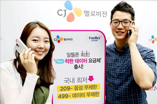 알뜰폰 업계 1위 사업자인 CJ헬로비전[037560]의 알뜰폰 브랜드인 헬로모바일은 국내 최저 요금으로 유무선 음성통화를 무약정에 무제한으로 풀고, 데이터 사용량에 비례해 요금에 차등을 둔 LTE 데이터 선택 요금제 12종을 출시한다고 17일 밝혔다.