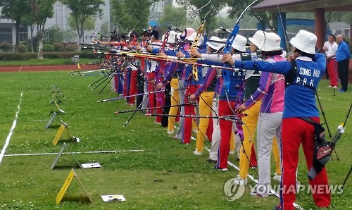 (의정부=연합뉴스) 김도윤 기자 = 경기도가 북한 양궁팀의 국제대회 우승을 기뻐하고 있다.