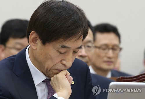 (서울=연합뉴스) 김지훈 기자 = 이주열 한국은행 총재는 17일 "경기를 살리려면 재정정책도 역할을 해야 한다는 것이 많은 사람의 의견"이라며 정부의 추가경정예산 편성이 필요함을 우회적으로 지적했다.