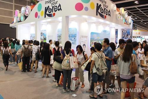 | △ 홍콩 관광박람회, 메르스 우려에도 한국홍보관 북적 (홍콩=연합뉴스) 최현석 특파원 = 14일 홍콩국제관광박람회가 열리는 홍콩섬 컨벤션전시센터 내 한국홍보관은 한국 내 메르스 확산에 따른 우려에도 한국 여행 계획을 가진 홍콩인과 중국인들로 인산인해를 이뤘다.2015.6.14 |