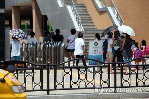 | △ 중동호흡기증후군(메르스) 여파로 휴업한 경기도 고양시내 한 초등학교가 지난 10일부터 정상수업을 진행했다. 하교 시간에 교문 앞에서 학부모들이 자녀를 기다리고 있다. |