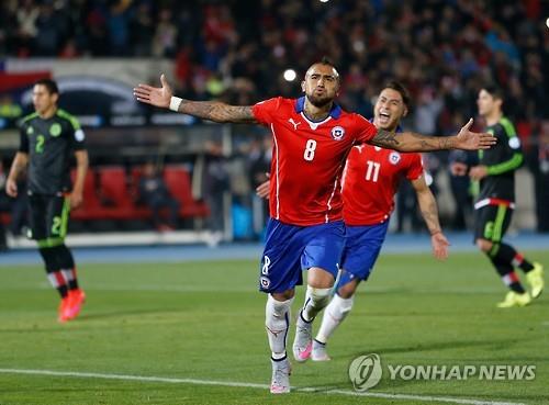 | △ 멕시코와의 경기에서 비달이 골을 넣고 환호하는 모습.(AP=연합뉴스 자료사진) |