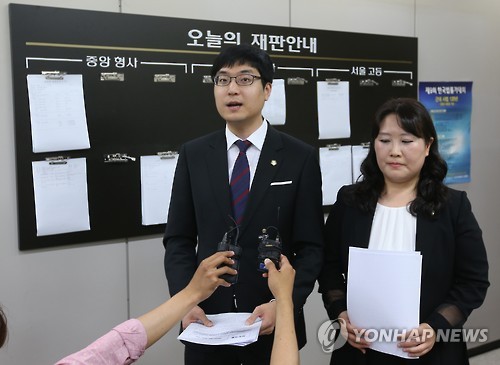 △ 대한변협 대의원 100인 "변협 집행부 사법시험 존치 주장 반대" (서울=연합뉴스) 임헌정 기자 = 대한변호사협회 대의원 100인 대표 최익구, 임지영(왼쪽부터) 변호사가 17일 오후 서울 서초동 서울중앙지법 기자실에서 '대한변호사협회 집행부의 사법시험 존치 주장에 반대'하는 내용을 담은 성명을 발표하고 있다. 지난 1월 실시된 대한변협 대의원 선거에 출마해 당선한 선출직 대의원은 모두 347명이다. 2015.6.17 kane@yna.co.kr