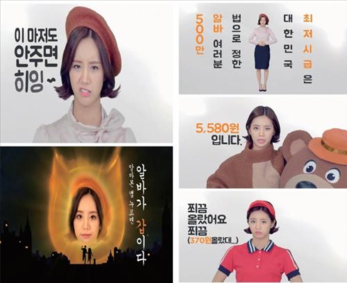 (서울=연합뉴스) 김연숙 기자 = "알바 여러분. 법으로 정한 대한민국 최저시급은 5천580원입니다. 5천580원 이런 시급. 쬐끔 올랐어요 쬐끔. 이마저도 안주면 히잉∼"