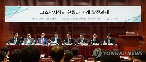 | △ '코스닥시장 현황과 발전과제' 정책 심포지엄 (서울=연합뉴스) 김수진 기자 = 18일 오후 서울 여의도 금융투자협회에서 한국증권학회와 자본시장연구원 공동 주최로 '코스닥시장의 현황과 미래발전과제' 정책 심포지엄이 열리고 있다. 2015.6.18 gogogo@yna.co.kr |