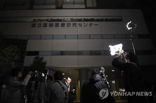 | △ (EPA=연합뉴스.자료사진) 작년 10월27일 에볼라 의심 환자가 입원해 검사를 받고 있는 일본 도쿄의 국립 국제의료연구센터 앞에 취재진이 몰려있는 모습. |