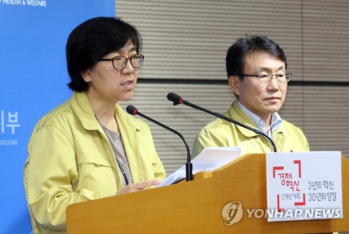 △ 메르스 환자 현황 브리핑 (세종=연합뉴스) 배재만 기자 = 정은경 중앙메르스관리대책본부 현장점검반장이 19일 오전 정부세종청사 보건복지부 공용브리핑룸에서 열린 중동호흡기증후군(메르스) 정례 브리핑에서 메르스 환자 현황에 대해 설명하고 있다. 오른쪽은 권덕철 총괄반장.