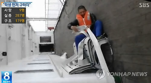 | △ 세월호 사고 때 학생 구조장면(연합뉴스 자료사진) |