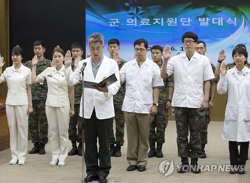 (서울=연합뉴스) 김귀근 이영재 기자 = 국방부는 19일 전국가적인 중동호흡기증후군(메르스) 위기 극복에 동참하고자 군의관과 간호장교 등으로 구성된 300여명의 의료지원단을 편성했다고 밝혔다.