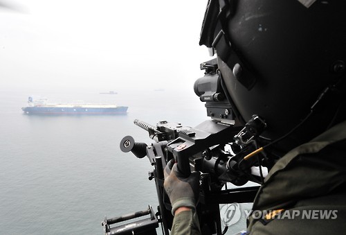 | △ 사격 준비하는 항공대원 (거제=연합뉴스) 김재홍 기자 = 17일 오후 해군 청해부대 19진 항공대원이 경남 거제시 지세포 인근 상공에서 작전 중인 해상작전헬기(링스헬기)에서 UDT/SEAL 검문검색대원들을 엄호하며 사격을 준비하고 있다. 2015.6.17 <<해군작전사령부>> pitbull@yna.co.kr |