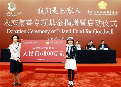 이랜드그룹은 지난 19일 중국 현지법인 중국이랜드와 중국장애인기금회가 베이징 인민대회당에서 '이랜드 장애인 전용 기금 설립식'을개최했다고 21일 밝혔다.