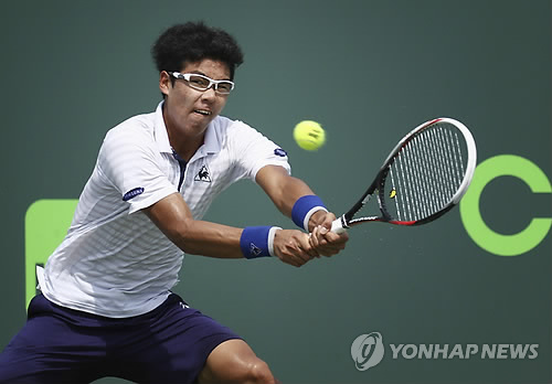 (서울=연합뉴스) 김동찬 기자 = 테니스 유망주 정현(19·삼성증권 후원)이 남자프로테니스(ATP) 투어 애건오픈(총상금 58만9천160 유로) 단식 2회전에 진출했다.