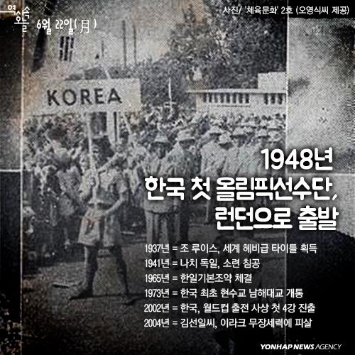 (서울=연합뉴스) 1948년 6월22일 부산항. 동래온천에서 하룻밤 휴식을 취한 한국 선수단이 일본 규슈 하카타(博多)로 향하는 배에 몸을 실었다. 선수단은 배와 기차, 비행기를 갈아타는 강행군 끝에 상하이, 홍콩, 방콕, 뭄바이, 카이로, 암스테르담 등을 거쳐 런던올림픽 개최지인 영국 런던에 입성했다.