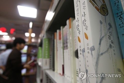 △ 신경숙 표절 논란 확산 (서울=연합뉴스) 김주성 기자 = 소설가 신경숙의 작품 표절 여부를 놓고 문학계 내 논쟁이 확산되는 가운데, 19일 신 작가가 업무방해와 사기 혐의로 검찰에 고발됐다. 19일 서울 교보문고 광화문점의 작가별 소설코너에 표절 의혹을 받는 단편 '전설'이 포함된 소설집 '감자 먹는 사람들'이 꽂혀 있다. 2015.6.19 utzza@yna.co.kr