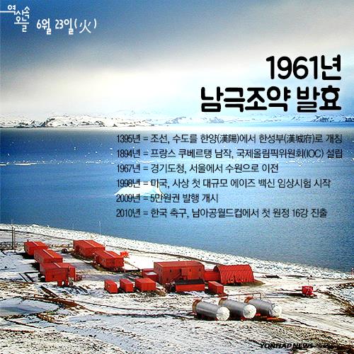 (서울=연합뉴스) 1961년 6월23일 남극조약이 발효됐다. 남극 영유권을 둘러싼 각국의 신경전이 일단락된 순간이다.