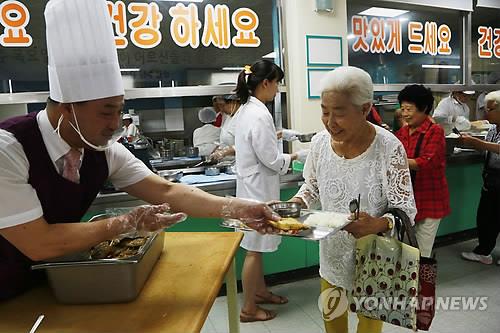 | △ 급식 봉사하는 김영만 충북 옥천군수 <<연합뉴스 DB>> |
