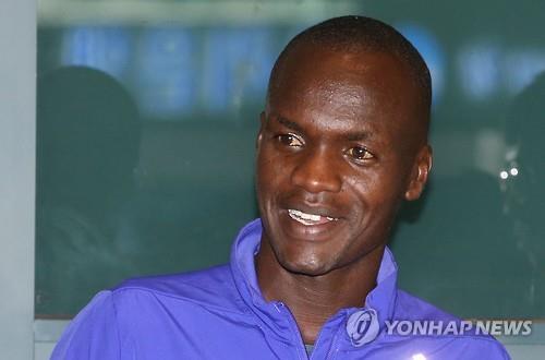 | △ (영종도=연합뉴스) 김주성 기자 = 특별 귀화를 추진하려는 케냐 마라토너 에루페가 23일 인천공항을 통해 입국한 뒤 취재진의 질문에 답하고 있다. 2015.6.23 utzza@yna.co.kr |