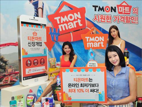 이달 1일 문을 연 티몬마트는 화장지·생수·라면 등 생필품 500개 브랜드 3천여종의 상품을 온라인 최저가로 판매하는 코너다.