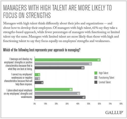 갤럽은 보고서에서 지속적으로 높은 성과를 내는 관리자는 부하 직원에 따른 개별적 목표 설정, 신뢰감 있고 의미있는 의사소통, 부하 직원의 책임에 대한 잦은 논의 등 세 가지 공통적인 특성이 있었다고 설명했다.