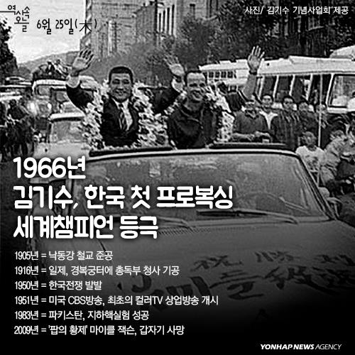 (서울=연합뉴스) 1966년 6월25일 서울 장충체육관에서 열린 김기수(1939∼1997)와 니노 벤베누티(1938∼·이탈리아)의 세계복싱협회(WBA) 주니어미들급 타이틀 매치는 단순한 복싱 경기가 아니었다.