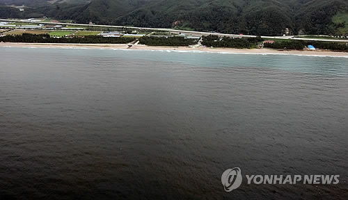 | △ 삼척 맹방 해변 앞바다가 적조로 울긋불긋 변해 있다. (연합뉴스 자료사진) |