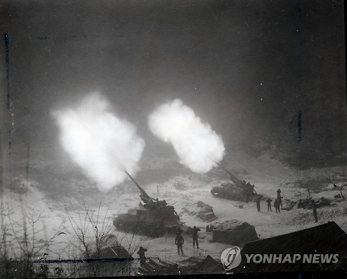 △ 국가기록원, 6.25전쟁 관련 사진 공개 (서울=연합뉴스) 행정자치부 국가기록원이 6.25전쟁 관련 사진을 24일 공개했다. 국가기록원은 2013년부터 미국 국립기록관리청에서 6.25전쟁 관련 사진 7천 여 매를 수집·정리 중이고, 그 중 일부를 국가기록원 홈페이지를 통해 공개한다고 밝혔다. 사진은 1951년 11월 26일 적진을 향해 포격하는 미 제25사단 소속 탱크부대. 2015.6.24 << 국가기록원 제공 >> photo@yna.co.kr