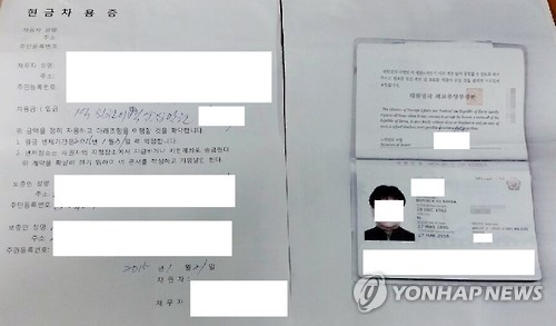 | △ 현금 차용증 (수원=연합뉴스) 류수현 기자 = 경기지방경찰청 국제범죄수사대는 지인을 해외 호텔 카지노로 유인해 사기도박을 벌인 뒤 이를 빌미로 호텔방에 감금하고 협박한 혐의(사기 등)로 이모(48)씨 등 3명을 구속하고 고모(51)씨 등 11명을 불구속 입건했다고 25일 밝혔다. 이들은 지난해 2월부터 올해 1월까지 10명으로부터 4차례에 걸쳐 모두 18억8천만원을 빼앗은 것으로 확인됐다. 피의자가 피해자에게 쓰게 한 차용증. 2015.6.25 << 경기지방경찰청 제공 >> you@yna.co.kr |
