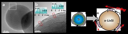 부피가 늘어날 때 그래핀 보호층이 슬라이딩돼 내구성을 향상시키는 메커니즘을 최초로 규명했다.