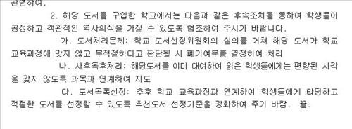 그로부터 1주일 뒤인 28일 경기도교육청은 초·중·고, 25개 교육지원청에 '언론보도관련 논란 도서 처리 협조'를 보냈다. 말은 협조이지만, 구체적인 후속조치로 '폐기 여부 결정 처리'와 책을 대여한 학생들을 대상으로 편향된 시각을 갖지 않도록 지도하라는 '사후독후처리'를 명기했다.