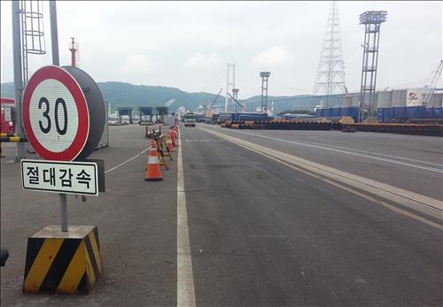현재 부두 내 도로의 제한속도는 시속 30㎞이지만, 이를 지키는 차는 많지 않다.