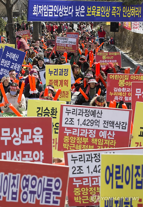 | △ 지난 3월 여의도에서 열린 누리과정 예산 편성 촉구 집회(연합뉴스 자료사진) |