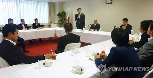 △ (도쿄 교도=연합뉴스) 아베 신조(安倍晋三) 일본 총리의 측근들 주도로 결성된 자민당 소장파 모임에서 나온 언론 통제 발언이 큰 파문을 일으키고 있다. 사진은 지난 25일 약 40명이 참석한 가운데 열린 자민당내 소장파 의원모임 '문화예술간담회'의 회합이 열리는 모습이다. 이 회합에서 언론통제 발언들이 나왔다.