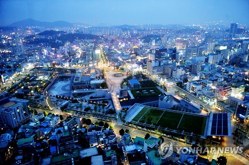 △ 오는 9월 개관을 앞둔 광주 동구 국립아시아문화전당이 주변 도심과 함께 화려한 야경을 선보이고 있다.