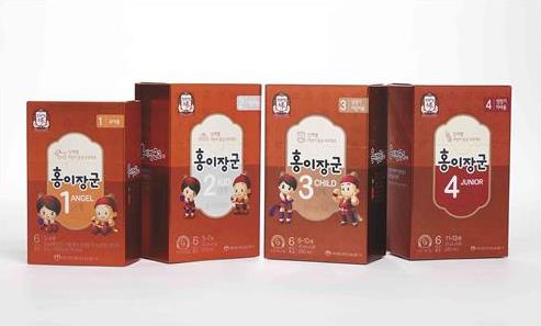 성장기 어린이들을 위한 '홍이장군'은 국내산 6년근 홍삼에 성장을 돕는 성분과 각종 기능성원료 등이 들어있다.