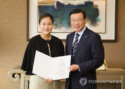 | △ 박삼구 회장, 바이올리니스트 임지영에 '1년 항공권' (서울=연합뉴스) 성혜미 기자 = 박삼구 금호아시아나그룹 회장이 바이올리니스트 임지영씨에게 1년 간 아시아나항공 비즈니스석 무제한 이용권을 30일 선물했다. 이 항공권은 해외연주 활동을 위한 출·입국시에만 사용할 수 있다. 임씨는 지난 5월 벨기에 브뤼셀에서 막을 내린 '2015 퀸 엘리자베스 콩쿠르'에서 우승했다. 2015.6.30 << 금호아시아나그룹 제공 >> noanoa@yna.co.kr |