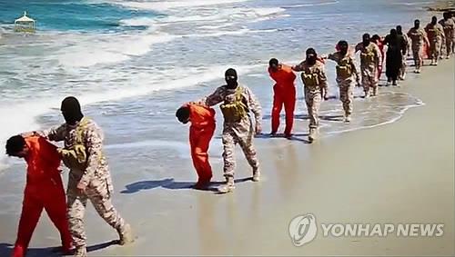 △ 지난 4월 공개된 IS의 에티오피아 기독교인 참수 모습(AP=연합뉴스 자료사진)