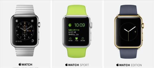 애플워치는 소비자가 취향에 따라 모델과 크기, 밴드를 선택할 수 있으며 스테인리스 재질의 '일반형', 알루미늄 재질의 '스포츠', 18K 금장 케이스로 만들어진 '에디션' 등 3종류로 나왔다.