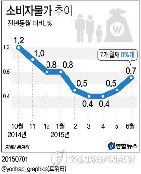 (세종=연합뉴스) 이광빈 김동호 박초롱 기자 = 소비자물가 상승률이 7개월째 0%대를 기록해 경기침체 속에서 물가가 하락하는 디플레이션 우려가 지속되고 있다.