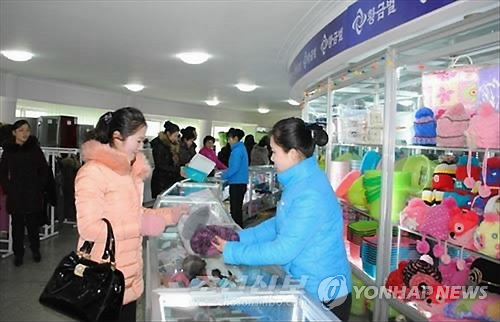 | △ 북한, 자정까지 영업하는 편의점 등장 (서울=연합뉴스) 북한에 자정까지 영업을 하는 사실상 편의점 형태의 '연쇄상점'이 등장했다. 재일본조선인총연합회(조선총련) 기관지 조선신보는 19일 '새로운 상업형태/표어는 안정, 편의'라는 제목의 평양발 기사에서 "지난해 12월20일 평양에 새로운 형태의 상점이 개업했다"고 밝혔다. '황금벌상점'이라는 명칭의 이 상점은 식료품과 각종 일용품을 판매하며 아침 6시부터 자정까지 영업을 한다. 2015.1.19 nkphoto@yna.co.kr |